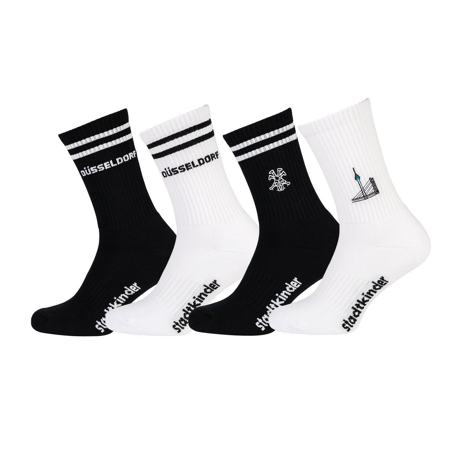Düsseldorf Sportsocken 4er-Set Mix, Rheinkniebrücke, Radschläger & Düsseldorf